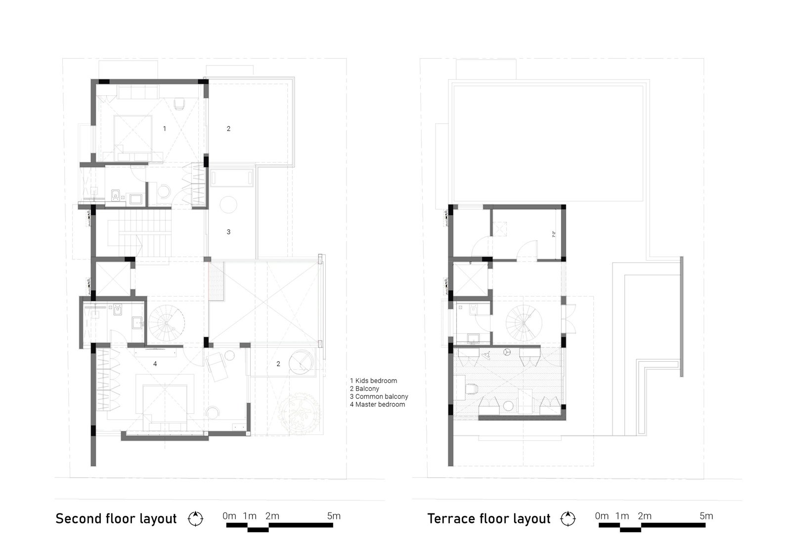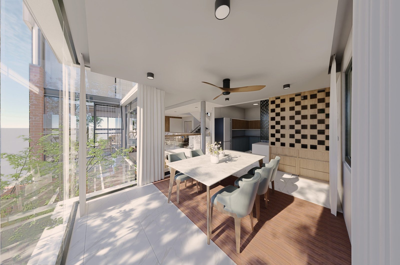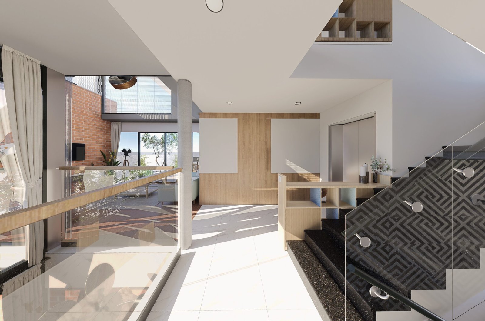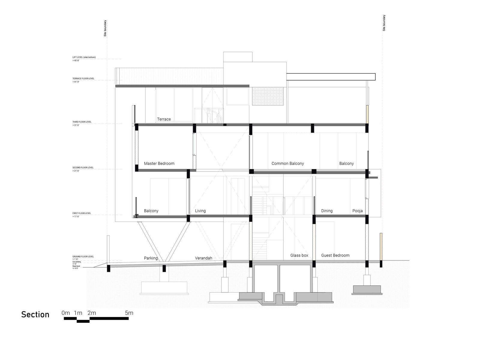 All the common spaces are wrapped by double height glazing and it overlooks into the internal court maintain privacy at all levels even with the use of expansive glass.
